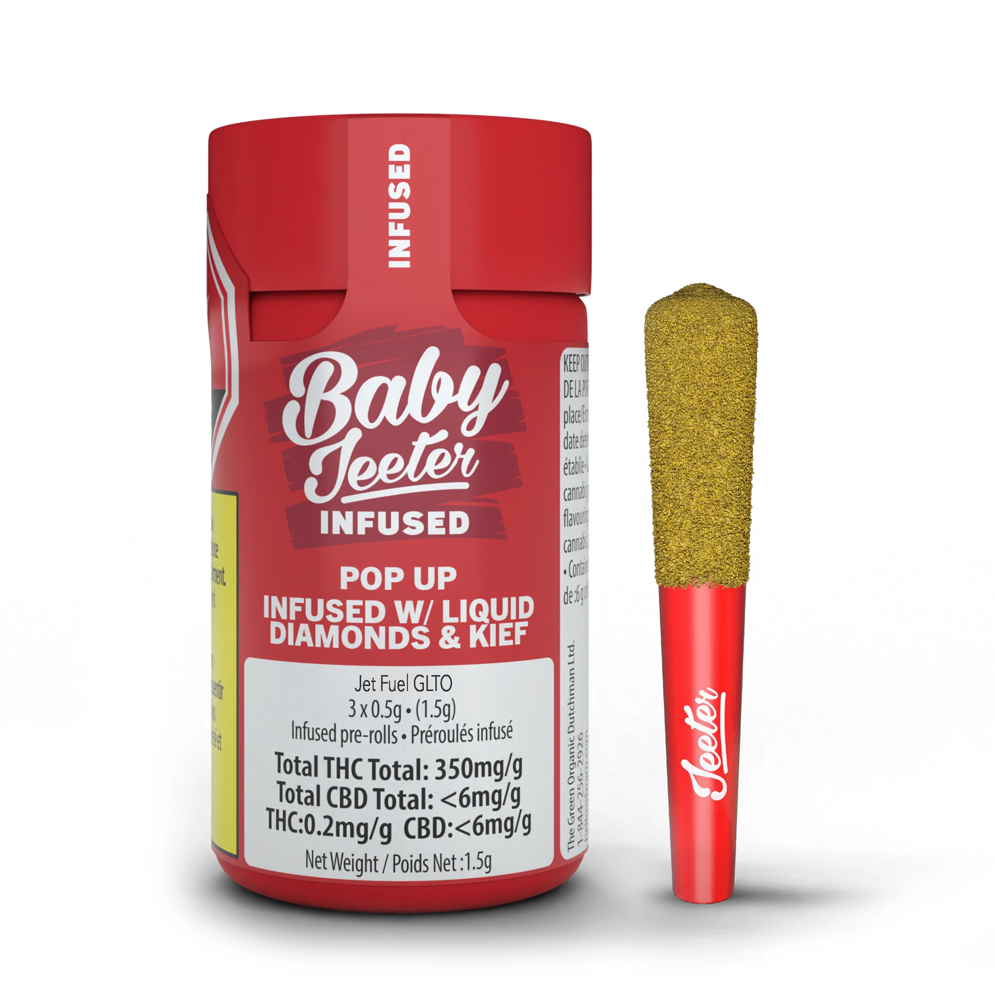 Jeeter's flagship "Baby Jeeter" is a meticulously crafted 0.5G pre-roll infused with liquid diamond enhanced distillate, crowned with a layer of kief and charged with a burst of unparalleled flavour. Our products are a hit with both newcomers and connoisseurs alike. We are thrilled to be able to offer you the opportunity to give them a try!